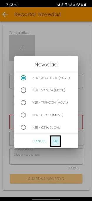 Después de seleccionar la novedad, haga clic en el botón “OK”. Si no está seguro de la información, haga clic en “Cancel”.