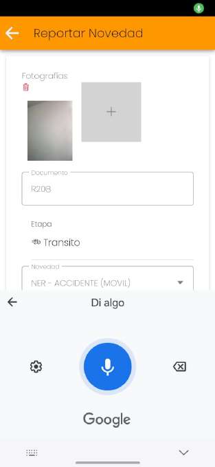 El dispositivo mostrará la opción para dictar la observación. Una vez dictado el texto, la aplicación lo interpretará y diligenciará el campo de observación.